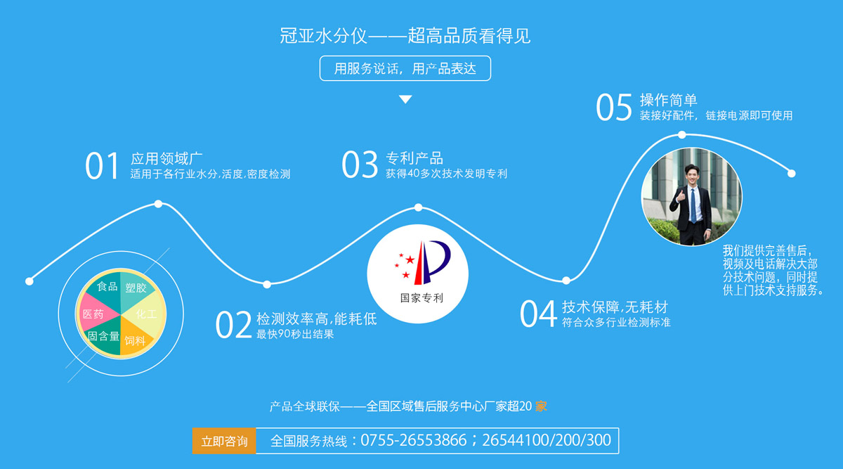 ? ? ? ? 冠亞集團(tuán)主導(dǎo)的三大系列水分儀已被個(gè)人、企業(yè)、大專(zhuān)院校、科研機(jī)構(gòu)、質(zhì)監(jiān)部門(mén)廣泛應(yīng)用于糧食收購(gòu)、食品加工、畜禽肉類(lèi)、農(nóng)副產(chǎn)品、生物醫(yī)藥、化工原料、環(huán)保電力、塑膠橡膠、無(wú)機(jī)粉體、陶瓷建材、紡織纖維、造紙包裝等行業(yè);三大系列中的多個(gè)產(chǎn)品已處于國(guó)際領(lǐng)先地位,如塑膠水分測(cè)定儀、碳酸鈣水分儀、石膏結(jié)晶水測(cè)定儀、食品水分檢測(cè)儀、肉類(lèi)快速水分儀、糧食水分儀、飼料水分測(cè)定儀、醫(yī)藥快速水分儀、化工原料水分儀、污泥含水率檢測(cè)儀、電池漿料水分儀、固含量檢測(cè)儀等填補(bǔ)了國(guó)內(nèi)高端水分儀應(yīng)用領(lǐng)域的空白,并已逐漸替代進(jìn)口產(chǎn)品,打造了業(yè)內(nèi)知名的“冠亞”品牌和“SFY”品牌。